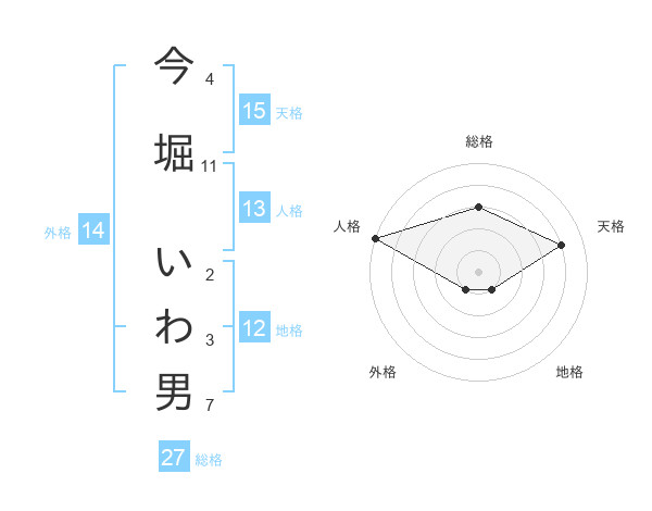 今堀 いわ男さんの総格は27画の3点!