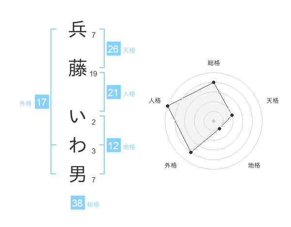 兵藤 いわ男さんを姓名の画数から五運を鑑定