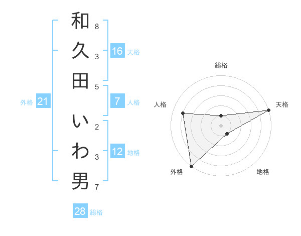 和久田 いわ男さんを姓名の画数から五運を鑑定