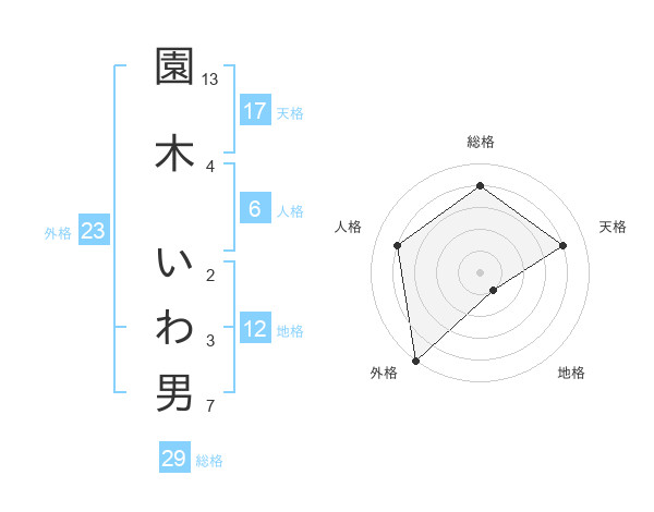 園木 いわ男さんを姓名の画数から五運を鑑定