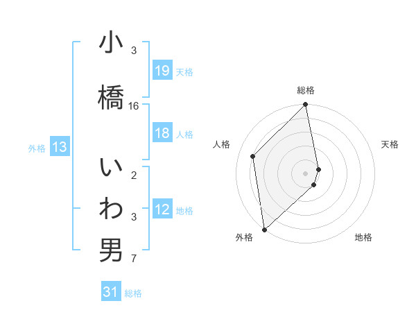 小橋 いわ男さんの外格は13画の5点!