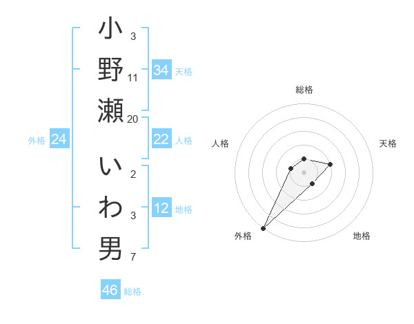 小野瀬 いわ男さんを姓名の画数から五運を鑑定