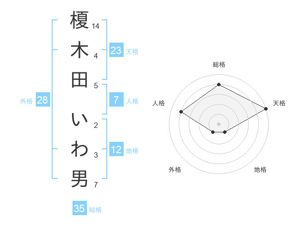 榎木田 いわ男さんの天格は23画の5点!