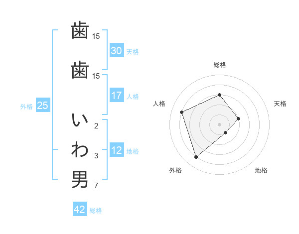 歯歯 いわ男さんを姓名の画数から五運を鑑定