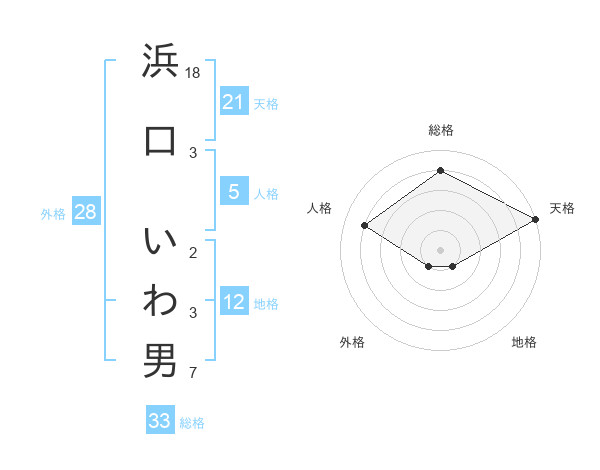 浜口 いわ男さんを姓名の画数から五運を鑑定