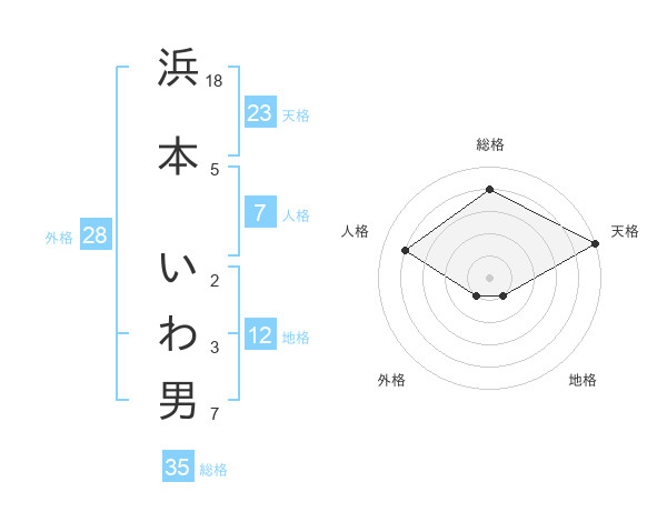 浜本 いわ男さんを姓名の画数から五運を鑑定