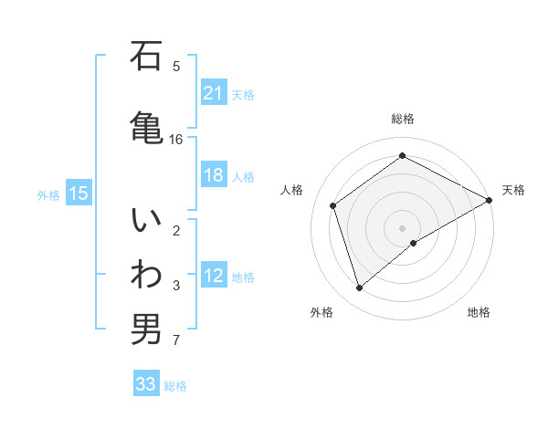 石亀 いわ男さんの天格は21画の5点!