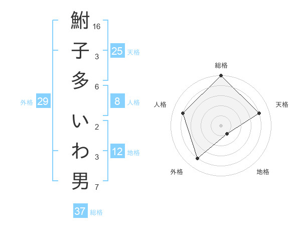 鮒子多 いわ男さんを姓名の画数から五運を鑑定