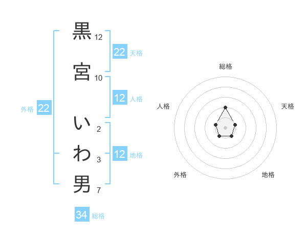 黒宮 いわ男さんを姓名の画数から五運を鑑定