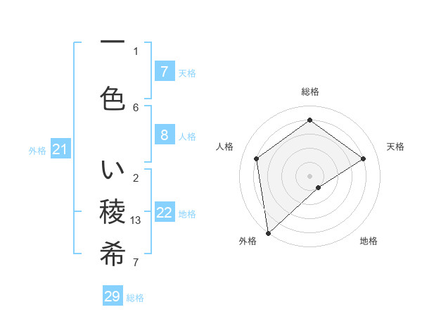 一色 い稜希さんの総格は29画の4点
