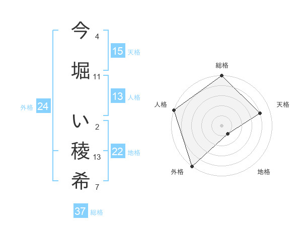 今堀 い稜希さんを姓名の画数から五運を鑑定