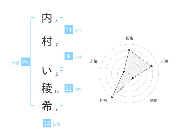 内村 い稜希さんを姓名の画数から五運を鑑定