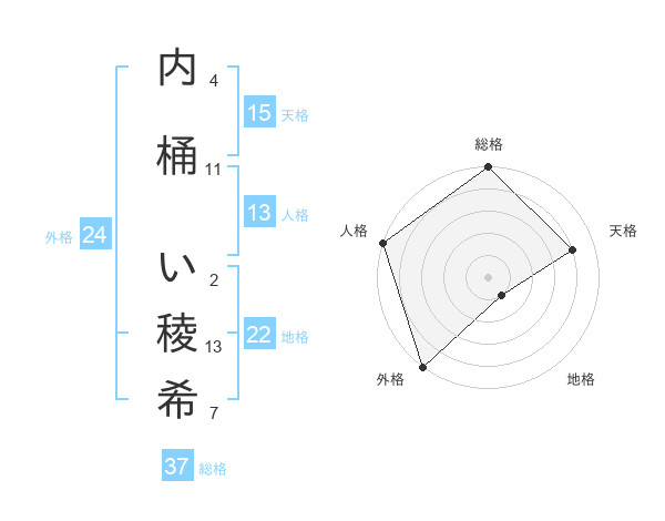 内桶 い稜希さんを姓名の画数から五運を鑑定