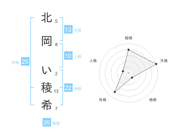 北岡 い稜希さんを姓名の画数から五運を鑑定