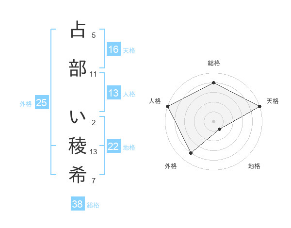 占部 い稜希さんの地格は22画の1点!