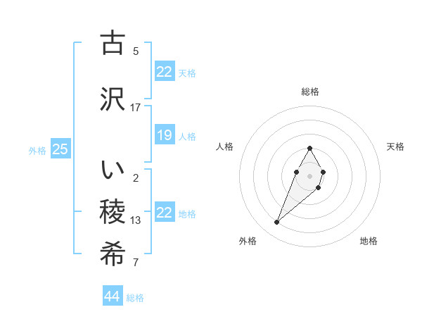 古沢 い稜希さんを姓名の画数から五運を鑑定