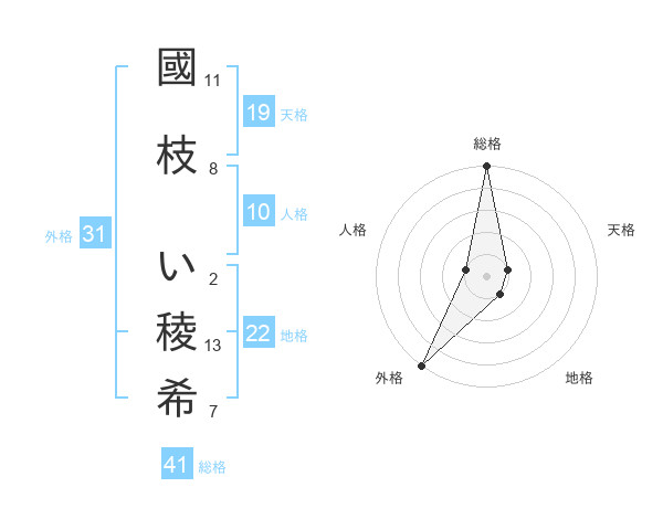 國枝 い稜希さんの総格は41画の5点!