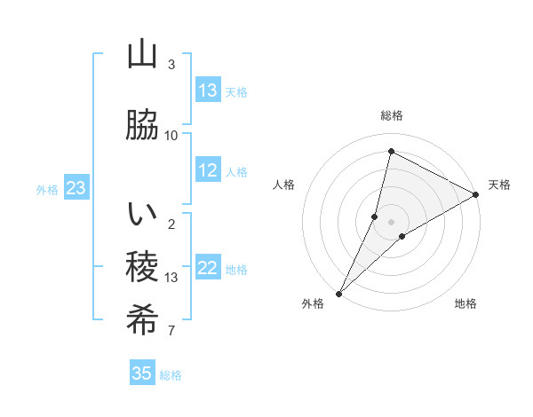 山脇 い稜希さんの天格は13画の5点