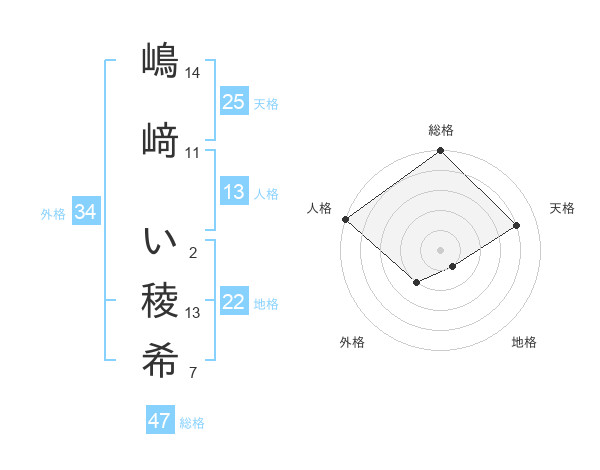 嶋﨑 い稜希さんを姓名の画数から五運を鑑定