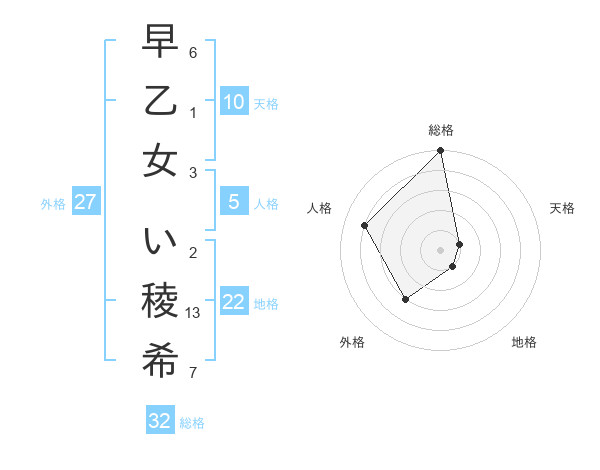 早乙女 い稜希さんを姓名の画数から五運を鑑定