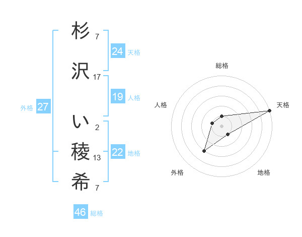 杉沢 い稜希さんを姓名の画数から五運を鑑定