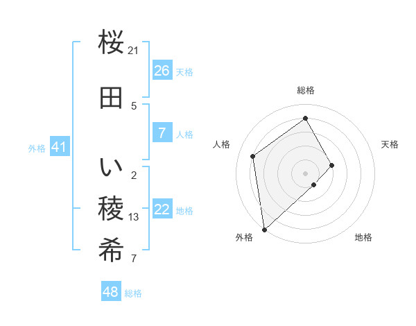 桜田 い稜希さんの総格は48画の4点
