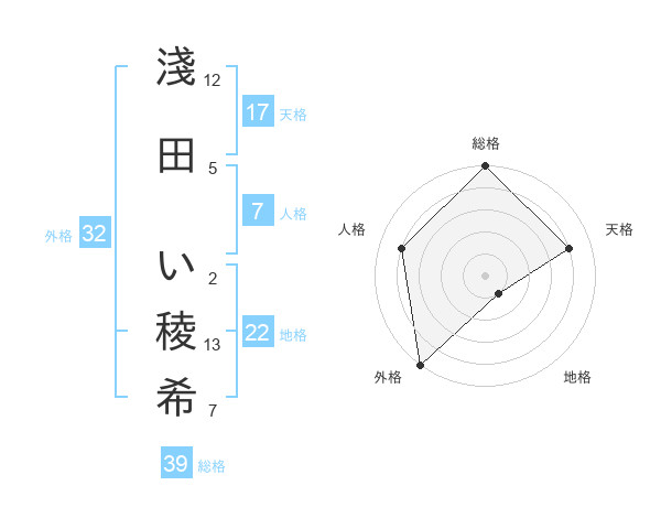 淺田 い稜希さんの総格は39画の5点!