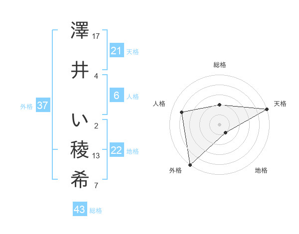 澤井 い稜希さんの天格は21画の5点