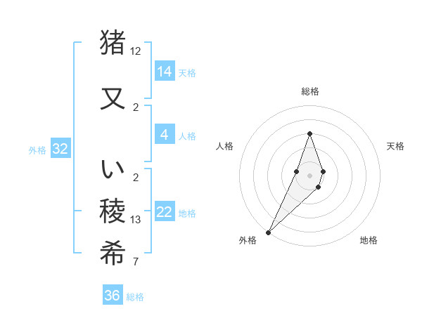 猪又 い稜希さんの外格は32画の5点