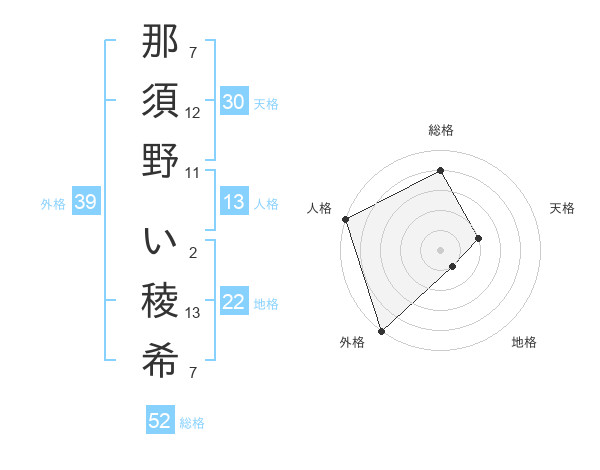 那須野 い稜希さんを姓名の画数から五運を鑑定
