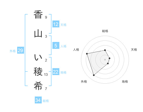 香山 い稜希さんを姓名の画数から五運を鑑定