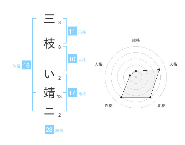 三枝 い靖ニさんの外格は18画の4点!