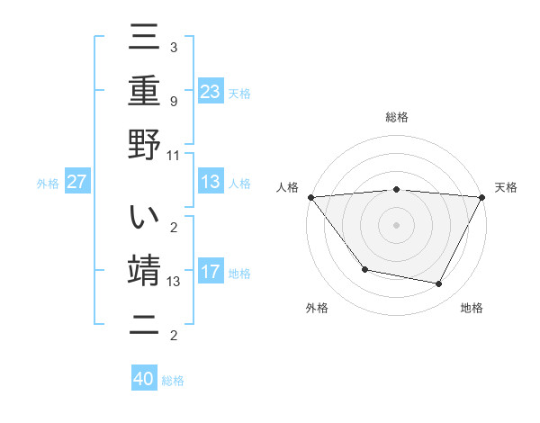 三重野 い靖ニさんの天格は23画の5点!