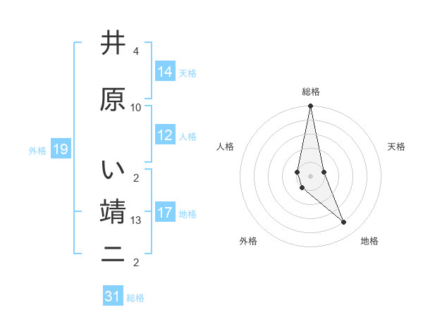 井原 い靖ニさんを姓名の画数から五運を鑑定