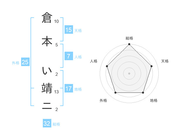 倉本 い靖ニさんを姓名の画数から五運を鑑定