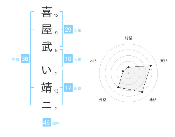 喜屋武 い靖ニさんを姓名の画数から五運を鑑定