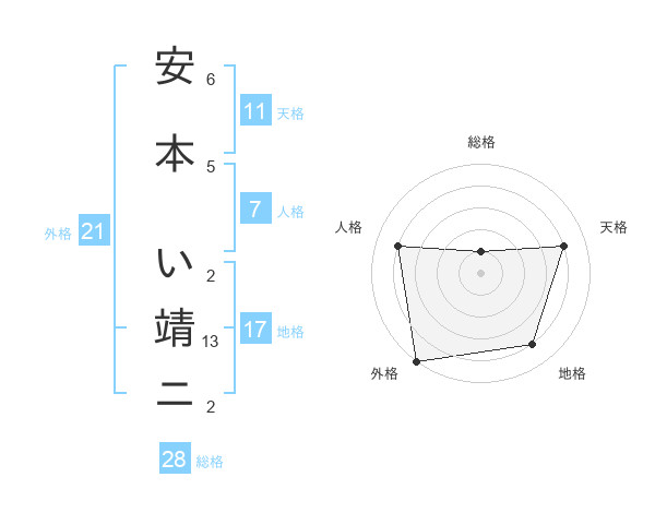 安本 い靖ニさんの地格は17画の4点!