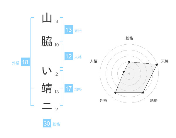 山脇 い靖ニさんを姓名の画数から五運を鑑定