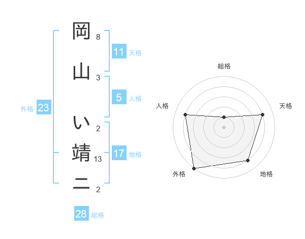 岡山 い靖ニさんを姓名の画数から五運を鑑定
