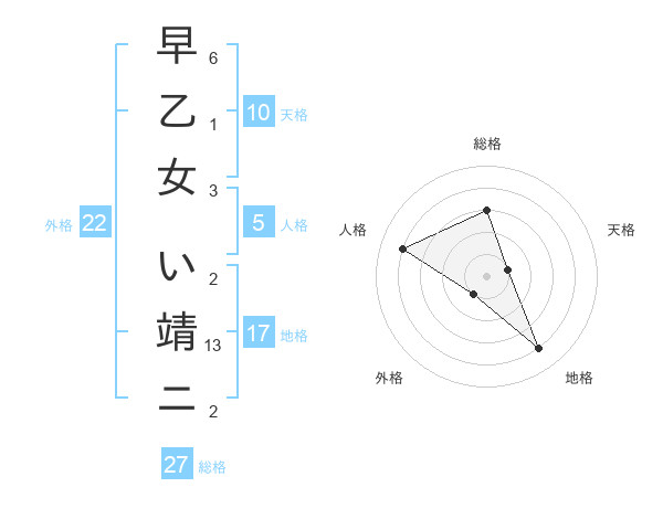 早乙女 い靖ニさんを姓名の画数から五運を鑑定