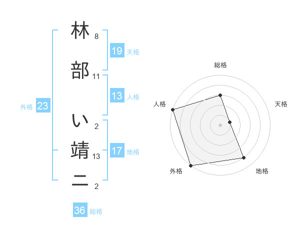 林部 い靖ニさんを姓名の画数から五運を鑑定