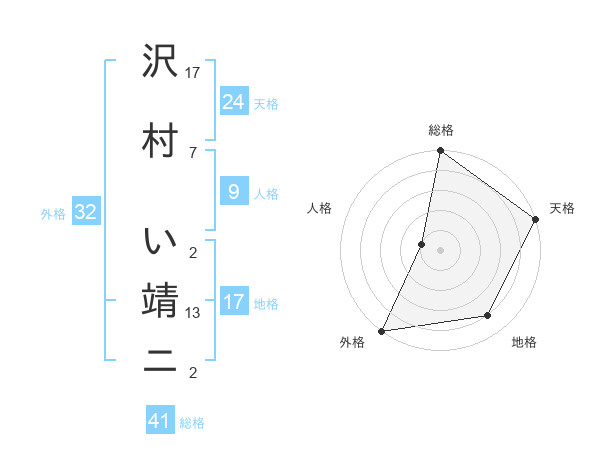 沢村 い靖ニさんを姓名の画数から五運を鑑定