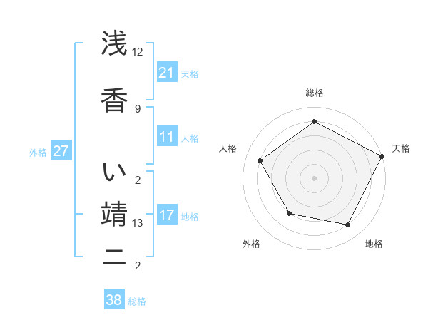浅香 い靖ニさんを姓名の画数から五運を鑑定