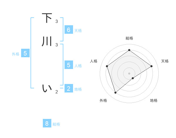 下川 いさんの外格は5画の4点!