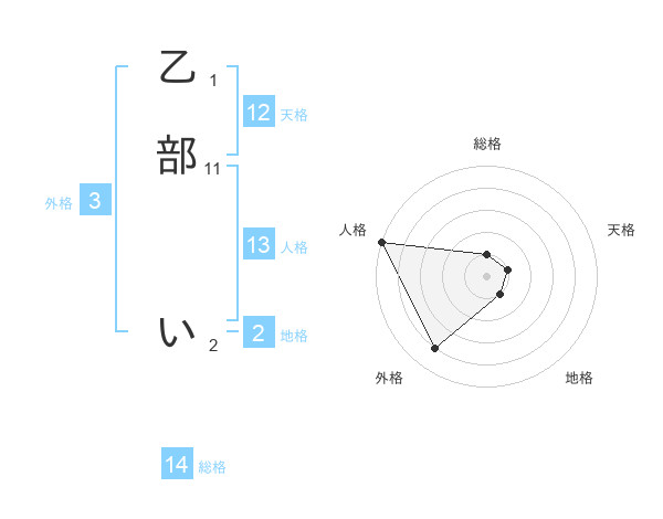 乙部 いさんの総格は14画の1点!