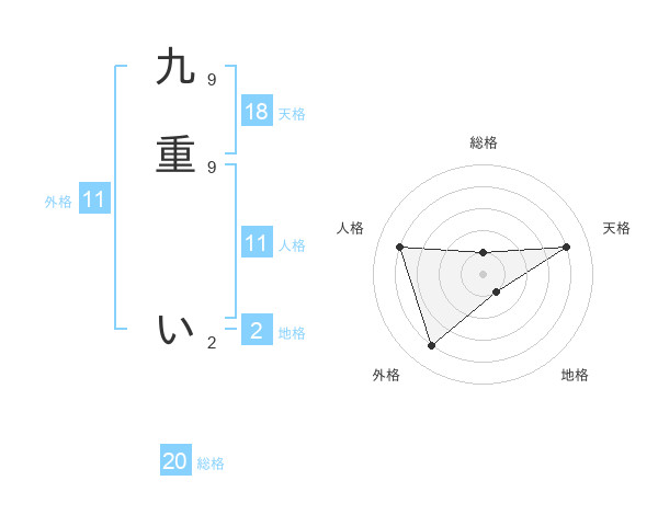 九重 いさんの総格は20画の1点!