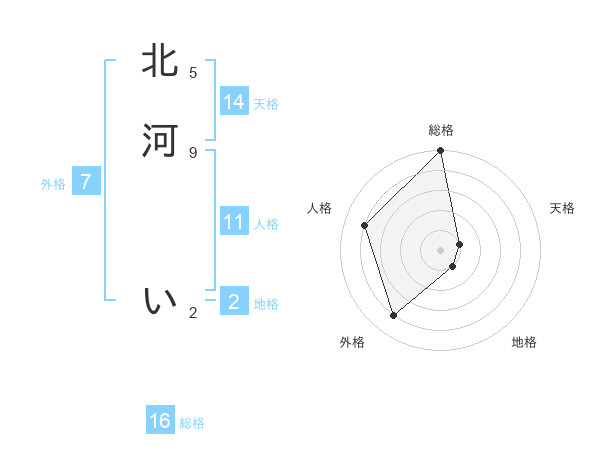 北河 いさんの総格は16画の5点!