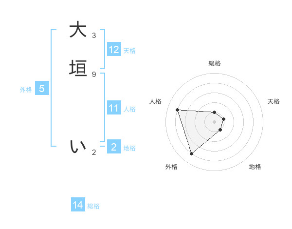 大垣 いさんの総格は14画の1点!