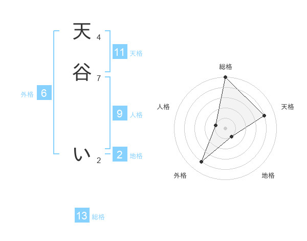 天谷 いさんの総格は13画の5点!