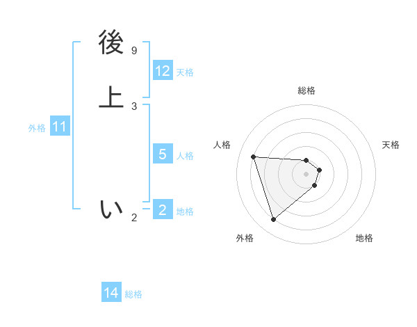 後上 いさんの総格は14画の1点!
